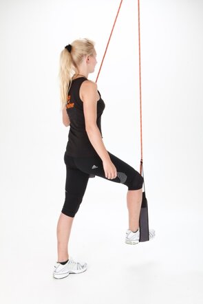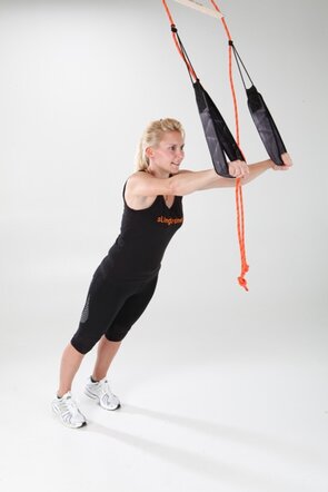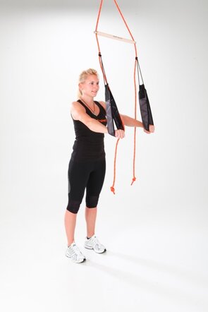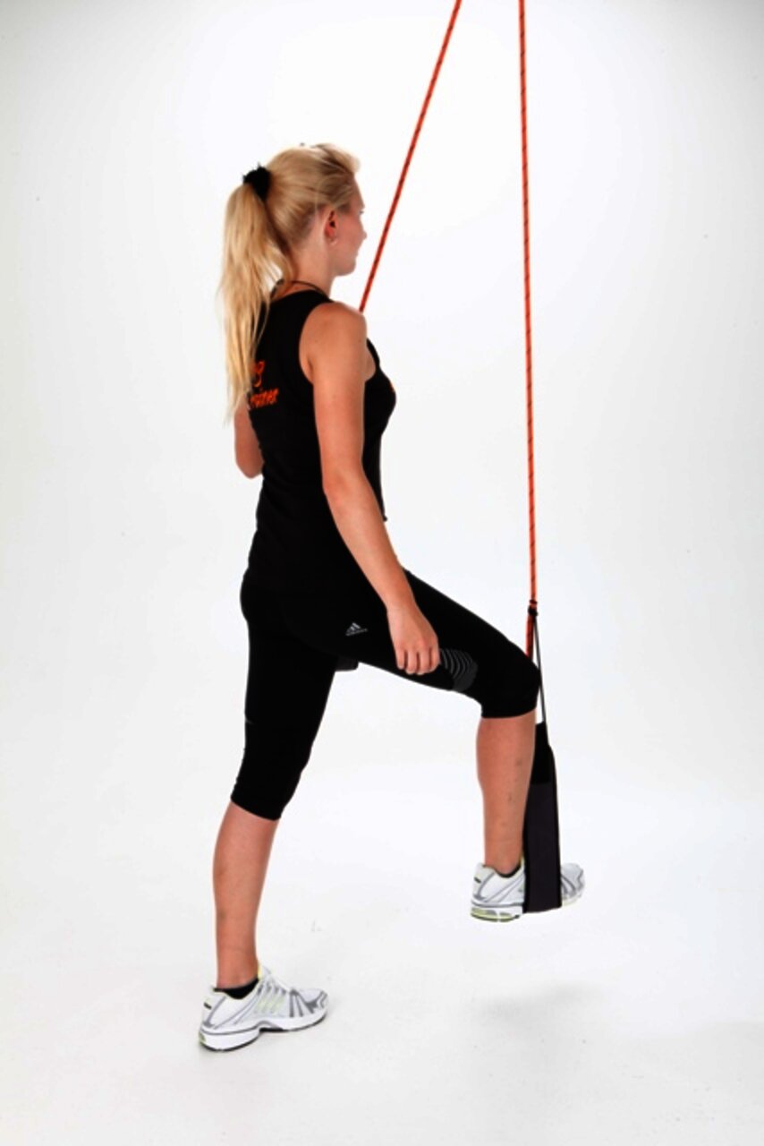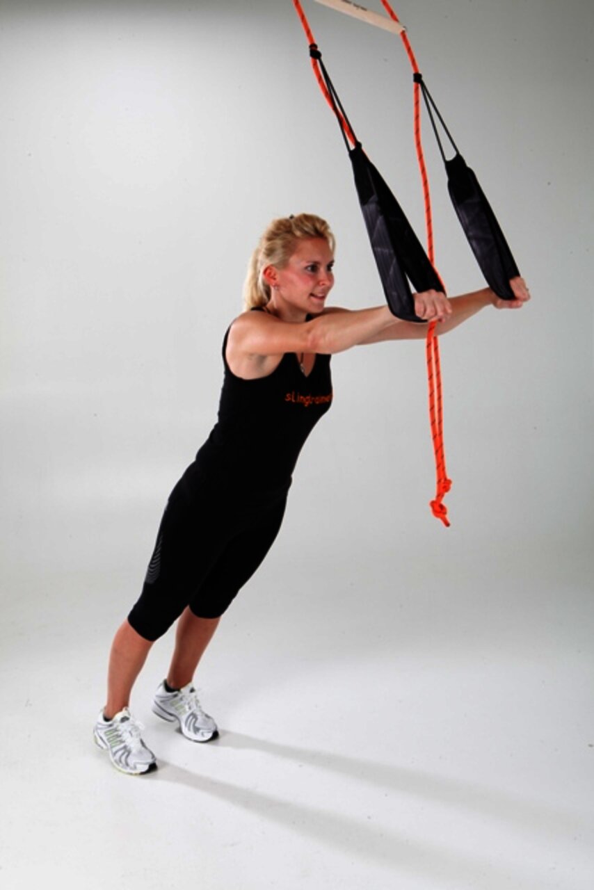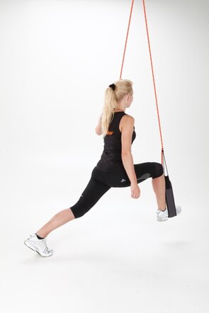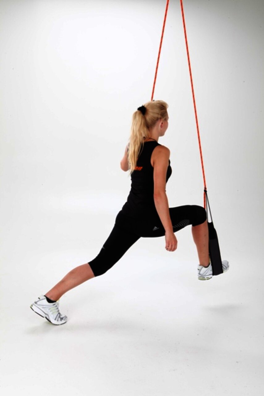 - Füße in die Schlingen, Bauch und Gesäß anspannen, Gesäß abheben