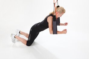 - Kniestand, Unterarme in die Schlingen, Nabel nach innen oben ziehen